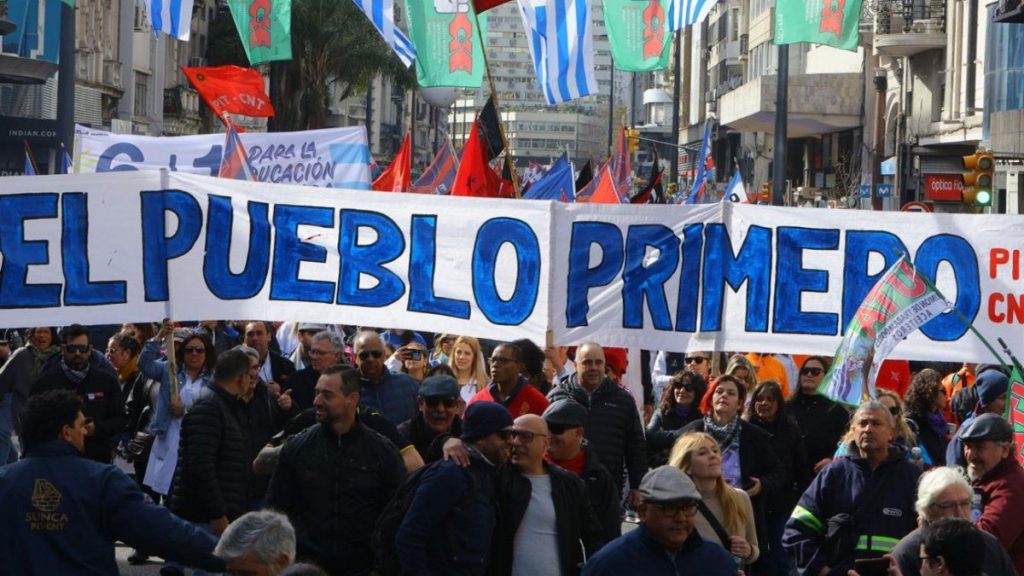 Redaccion 6 meses atrás El paro será general, de 9:00 a 13:00, bajo el lema «El pueblo primero, por salario, trabajo y más presupuesto». Fuente: enlace original About Author Redaccion See author's posts Tags: general lema paro primero pueblo salario será trabajo Post navigation Anterior Delgado sobre el presupuesto: "Es medio pelo, como el gobierno, en modo avión, sin mucha innovación, restrictivo"Siguiente Detectaron residuos de garrapaticida en carne exportada a China: la destruyeron y de momento no hay sanciones Deja una respuesta Cancelar la respuestaTu dirección de correo electrónico no será publicada. Los campos obligatorios están marcados con *Comentario * Nombre * Correo electrónico * Web Guarda mi nombre, correo electrónico y web en este navegador para la próxima vez que comente. Δ Más historias Políticas Orsi: gobierno "prioriza acuerdos de Estado a Estado" para patrullas oceánicas, tras rescisión con Cardama 19 horas atrás Redaccion Políticas Gobierno investiga si un buque noruego hizo exploración sísmica en la plataforma continental de Uruguay 19 horas atrás Redaccion Políticas Bergara compareció ante la Junta por proyecto de movilidad y oposición cuestionó elección de BRT "sin informes" 19 horas atrás Redaccion